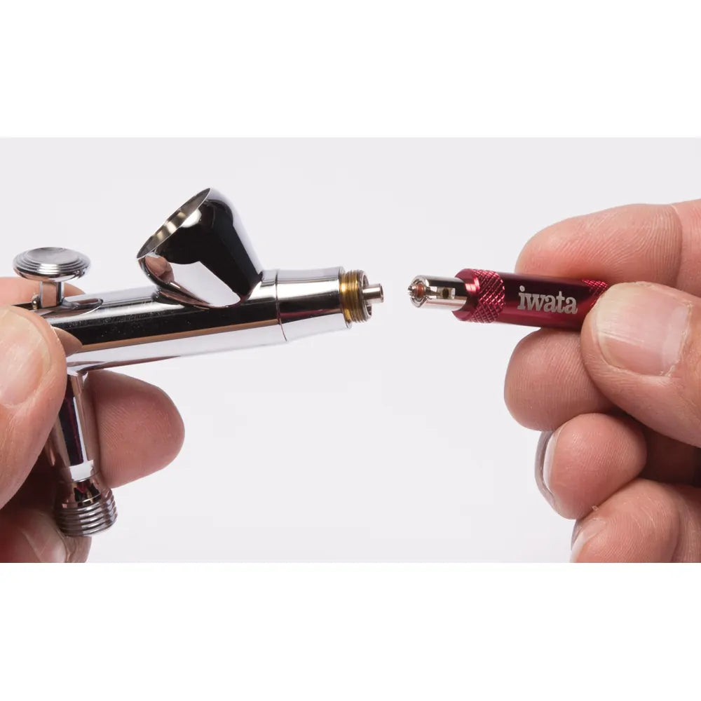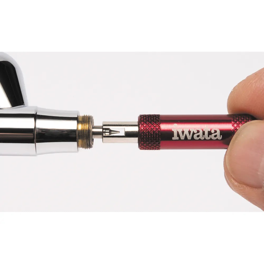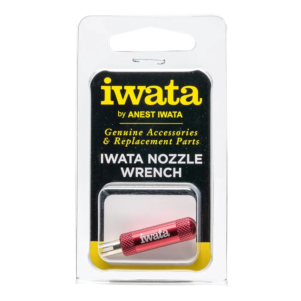 Iwata Precision Nozzle Wrench allows you to remove and tighten your airbrush nozzle without overtightening. The Iwata Nozzle Wrench reduces torque on the nozzle threads helping eliminate damage. The Iwata Nozzle Wrench works on all Iwata and Neo airbrushes except the Iwata Eclipse Series and the Neo TRN 2 Side-Feed Trigger Airbrushes