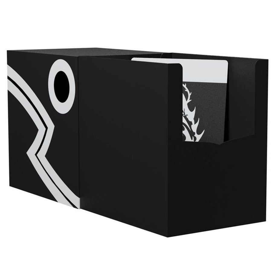 The Dragon Shield Double Shell is a sturdy deck box with two layers of protection all the way around. The lid wraps around the box for a secure closure or can be set to stay open for easy access to cards.