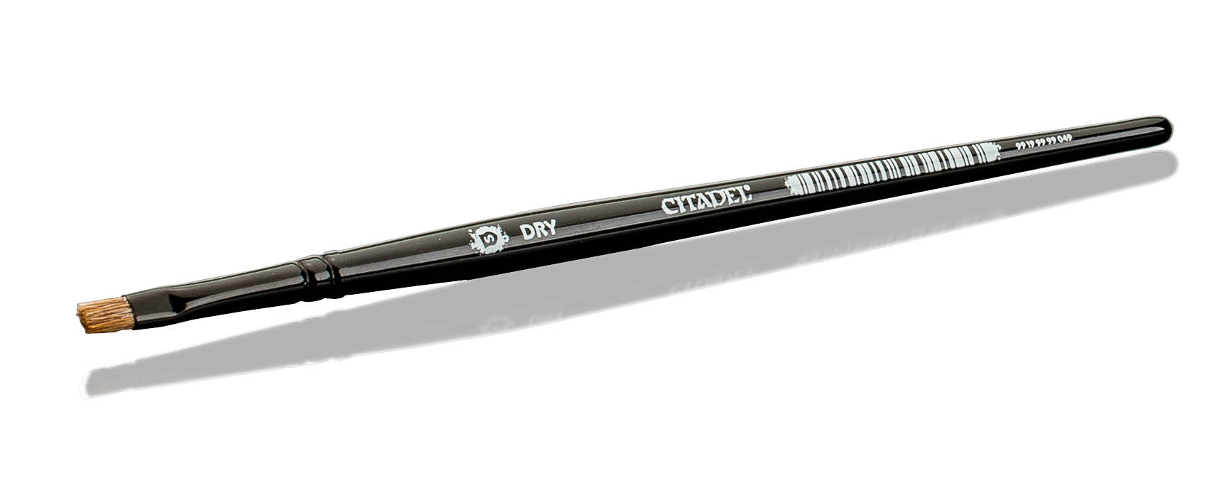 This small brush (S Dry) features a light ox hair and synthetic blend of bristles for stiffness and durability. The flat profile means a consistent coverage on raised areas - ideal for drybrushing!