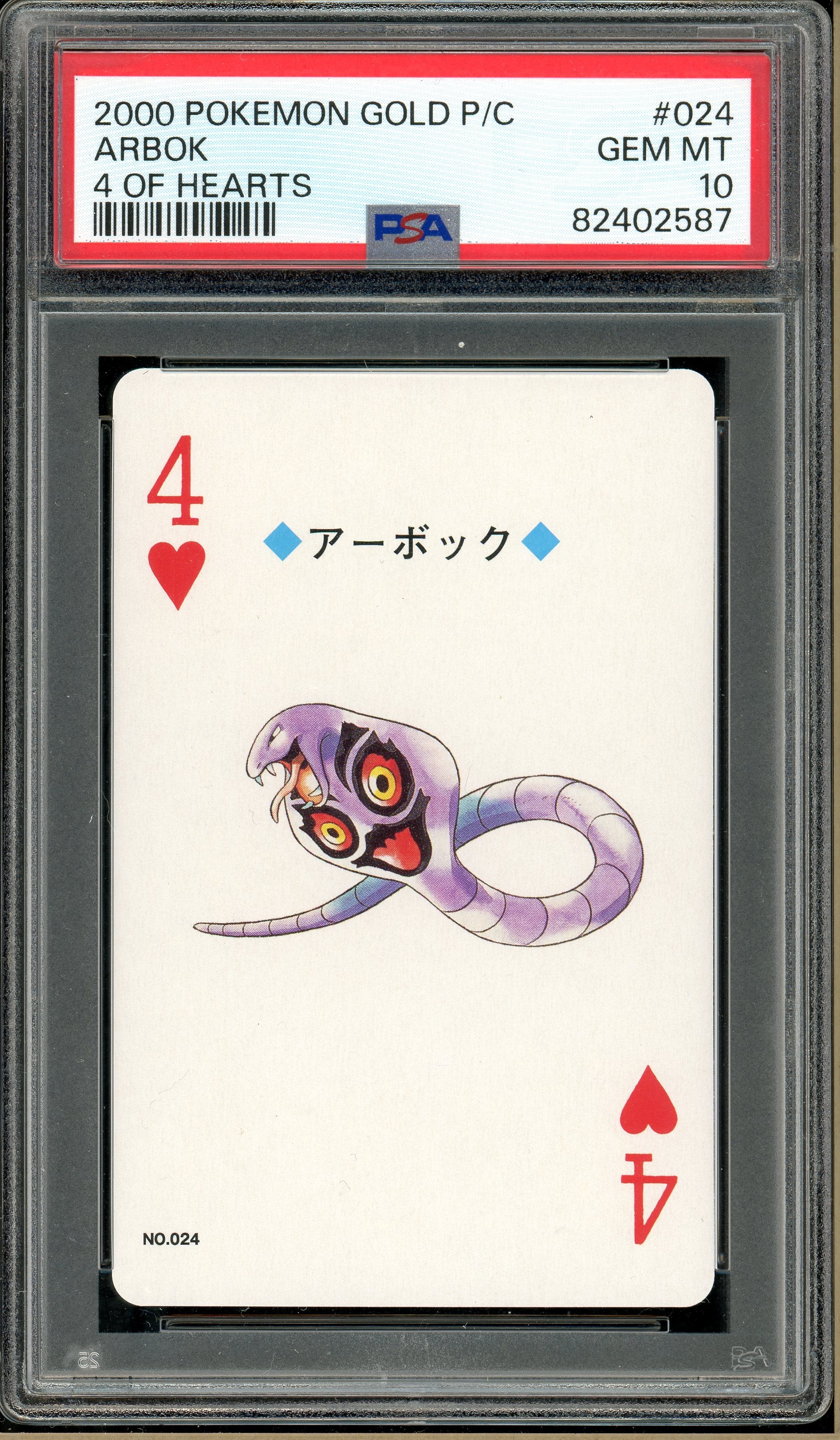 Pokémon - Arbok 4 of Hearts, Gold Ho-oh Back Poker Deck #024 PSA 10
