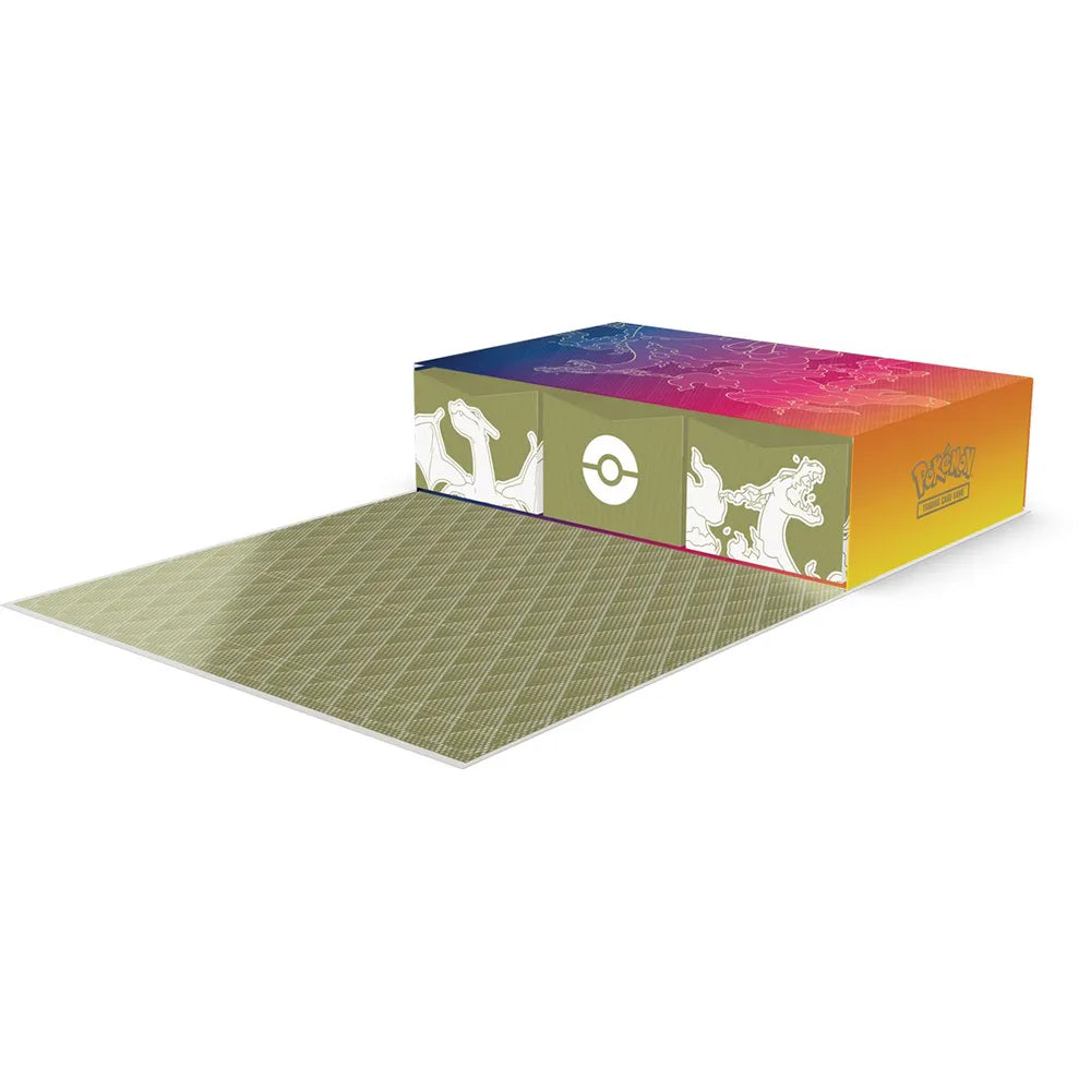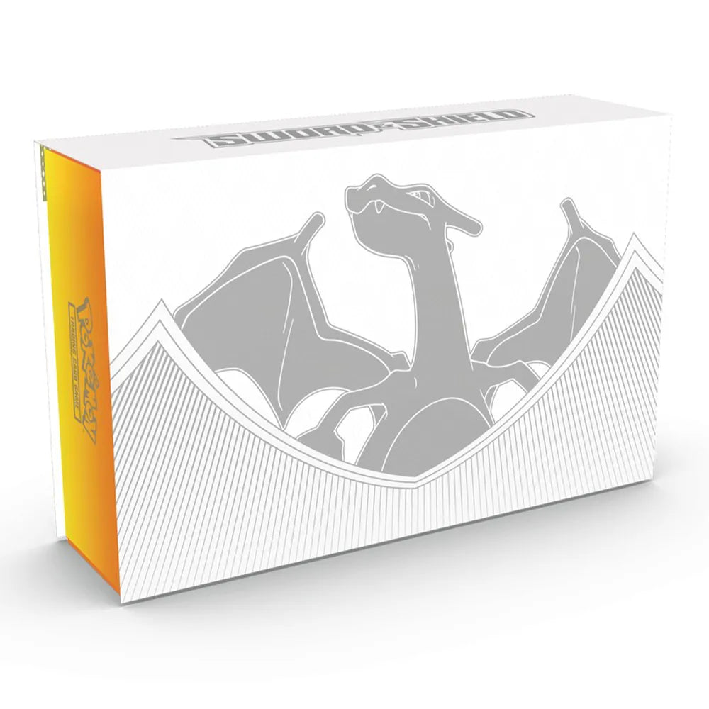 Celebrate the Sword & Shield Series and the era of Pokémon V, Pokémon VMAX, and Pokémon VSTAR with a hotshot who knows how to put all that power to good use! Charizard turns up the heat as a trio of promo cards with an etched foil treatment, and its Gigantamax form shows off blazing style on a playmat, metal coin, and set of card sleeves. Metal dice and condition markers round out this ultimate set of gameplay accessories. And as you open the huge stack of booster packs inside this box, take a journey through the Sword & Shield Series with an original booklet full of images and stats!