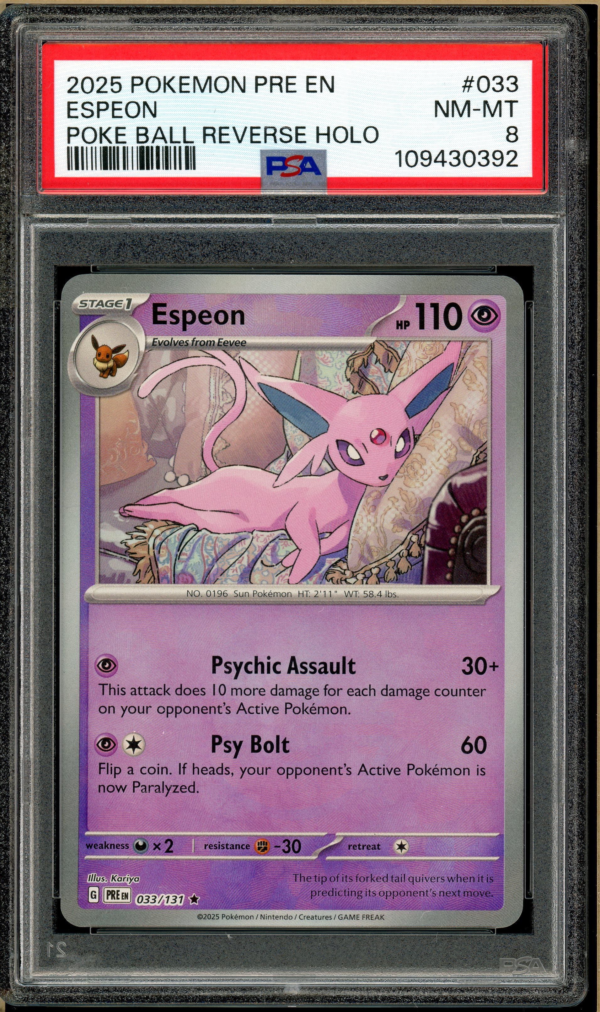 Pokémon - Espeon Poke Ball Reverse Holo Prismatic Evolutions #033 PSA 8