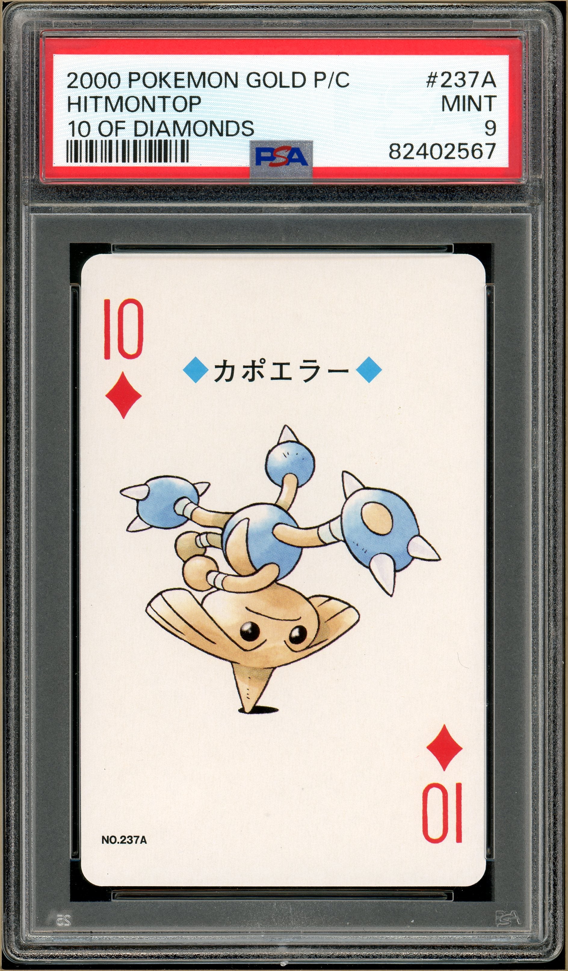 Pokémon - Hitmontop 10 of Diamonds, Gold Ho-oh Back Poker Deck #237A PSA 9