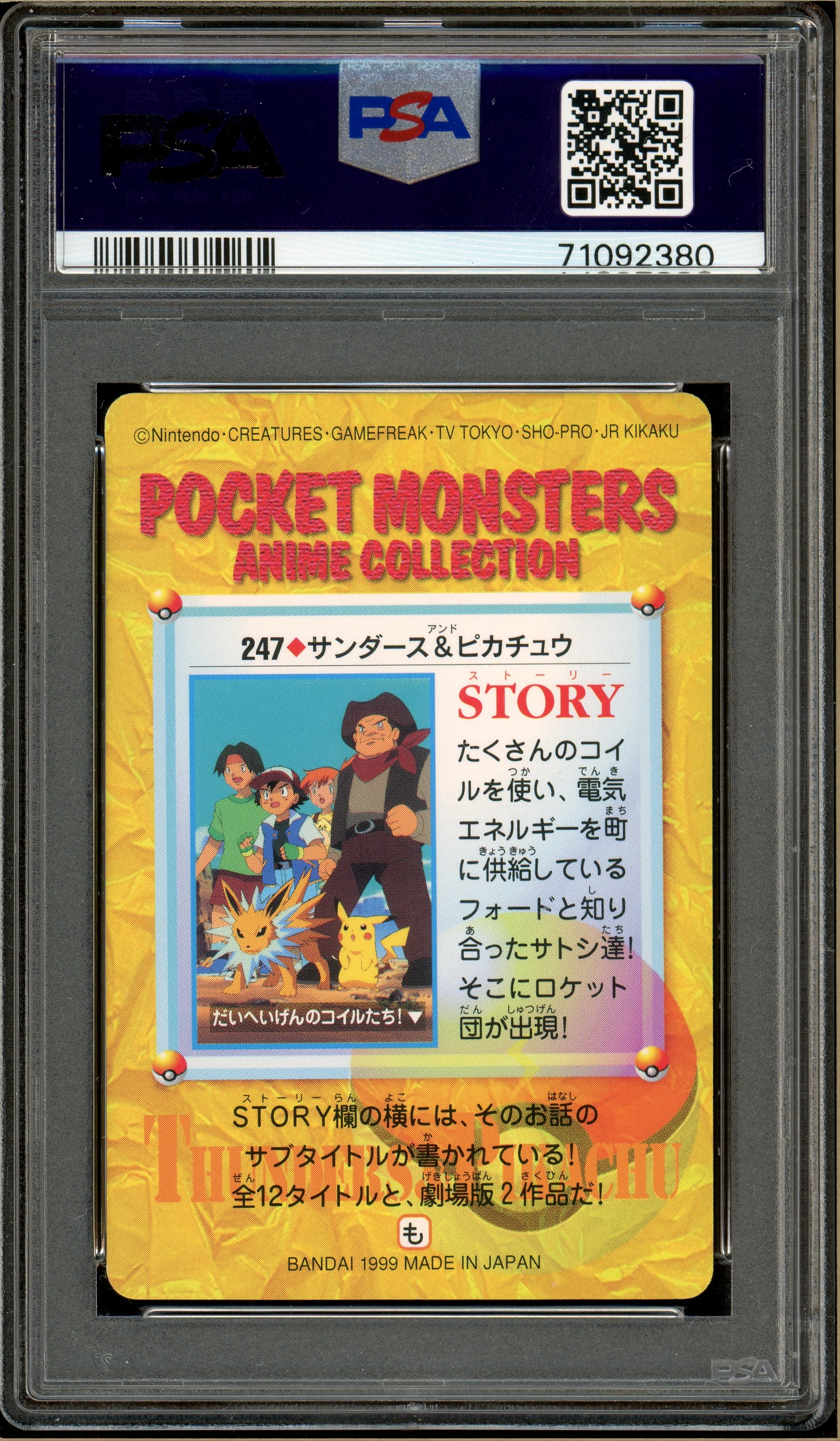 Pokémon - Jolteon & Others, Carddass Vending Series 7 #247 PSA 10
