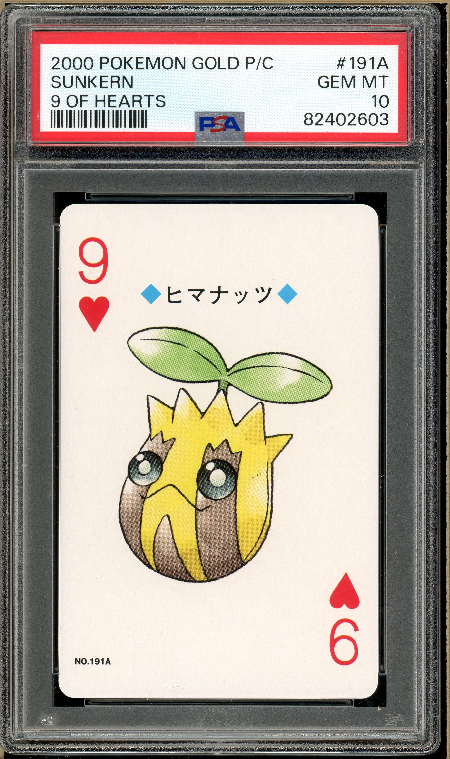 Pokémon - Sunkern 9 of Hearts, Gold Ho-oh Back Poker Deck #191A PSA 10