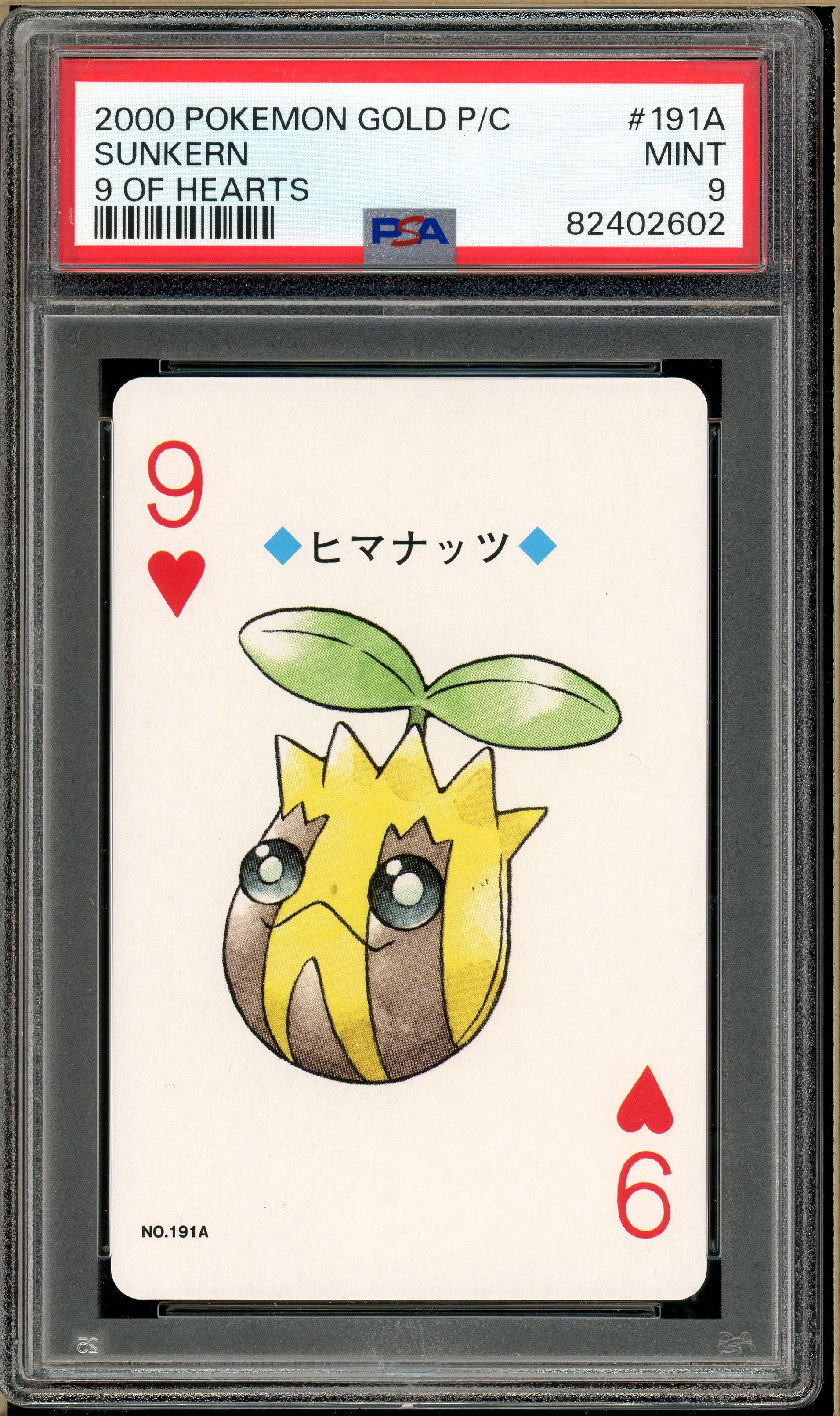 Pokémon - Sunkern 9 of Hearts, Gold Ho-oh Back Poker Deck #191A PSA 9