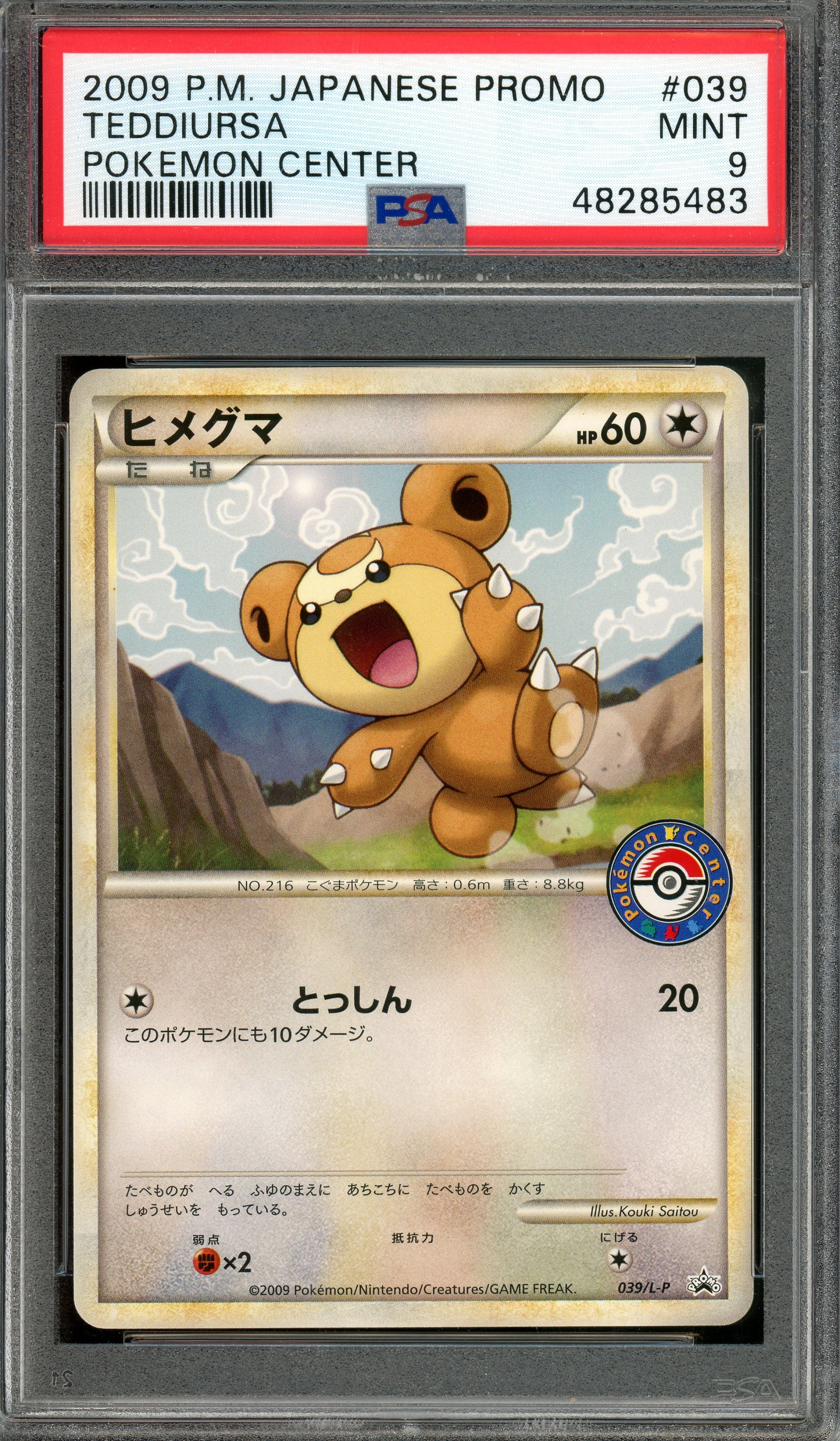 Pokémon - Teddiursa Pokémon Center Japanese Promo L-P #039 PSA 9