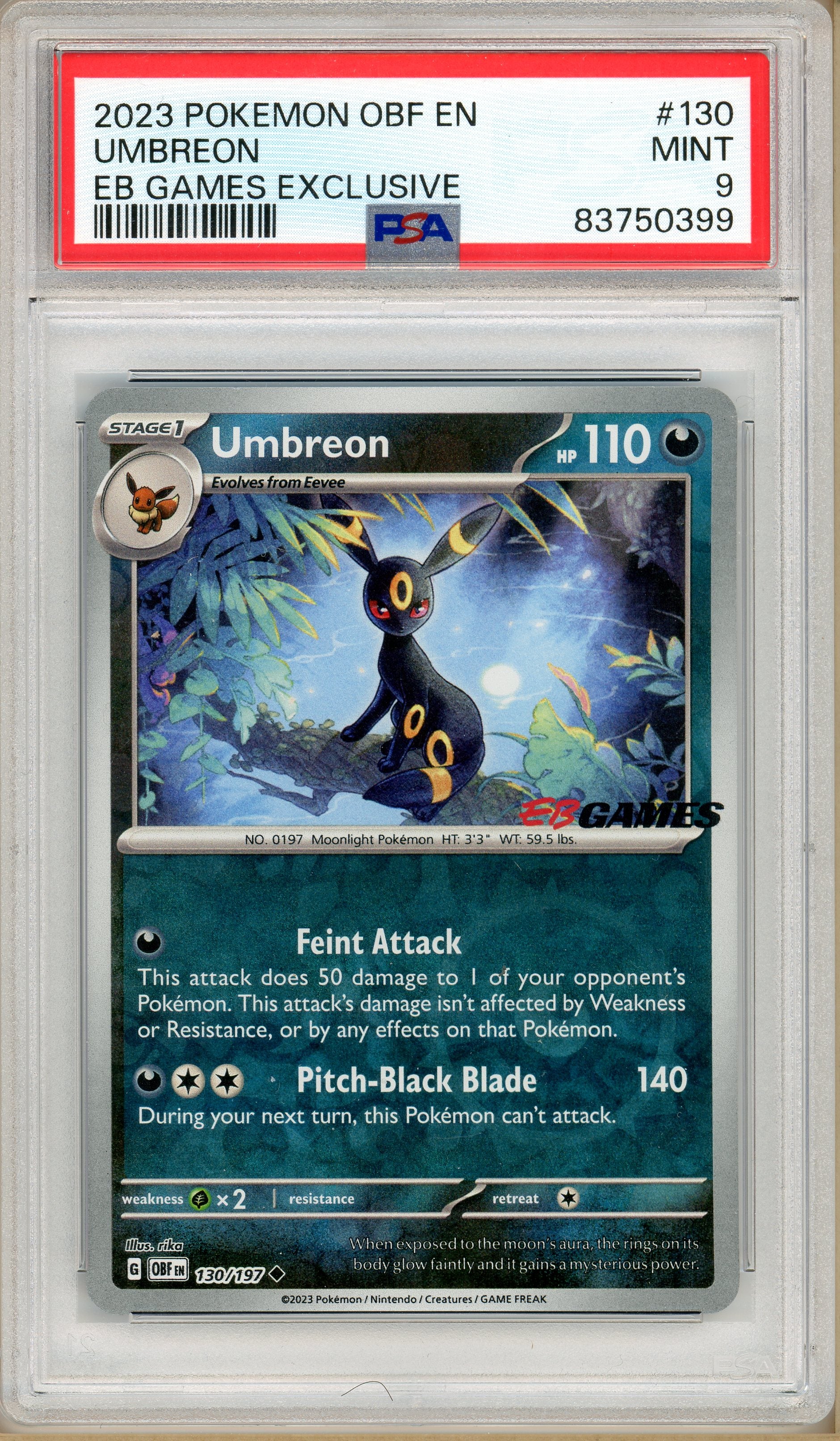 Pokémon - Umbreon, Obsidian Flames Reverse Holo EB Games Promo #130 PSA 9