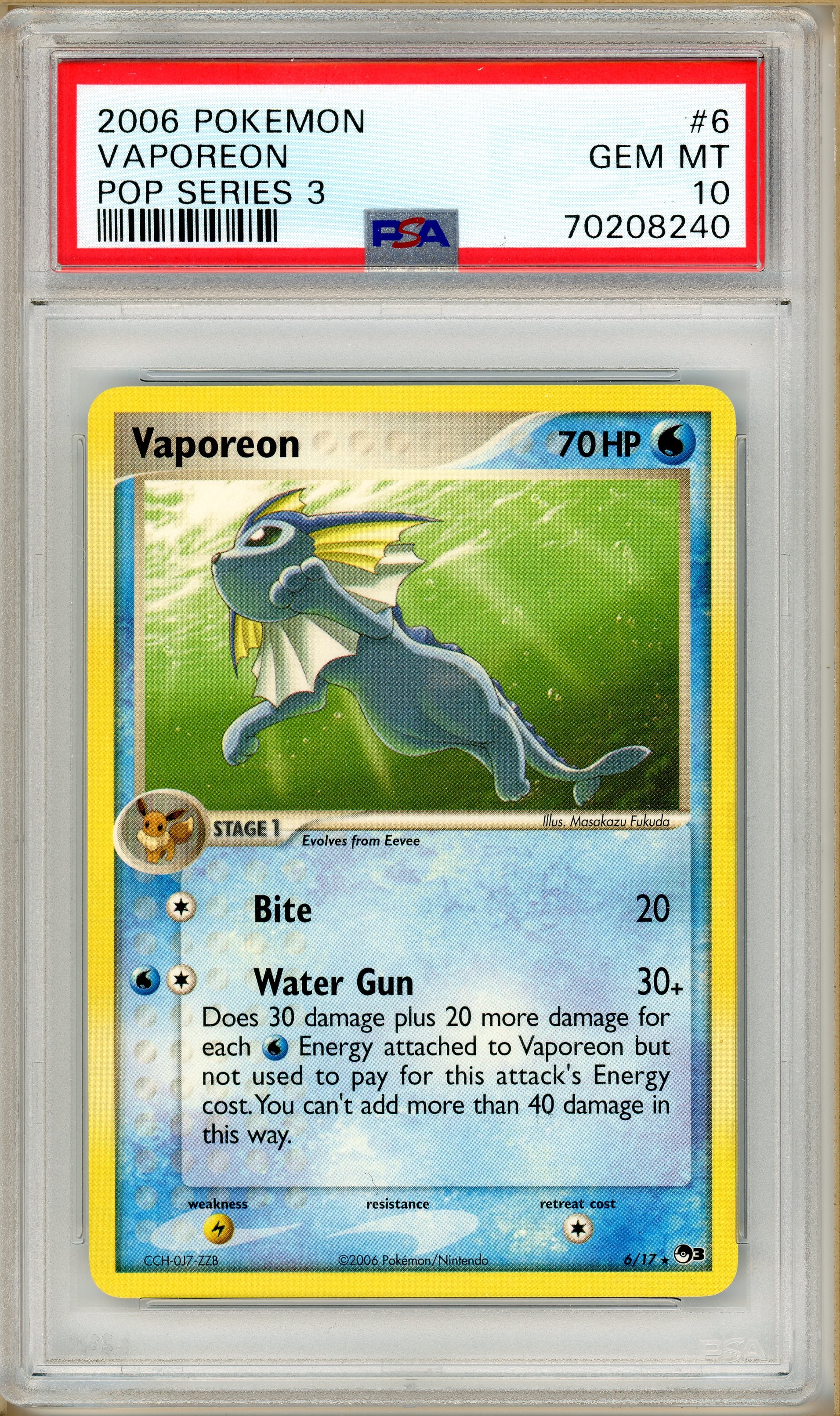 Pokémon - Vaporeon, POP Series 3 #6 PSA 10