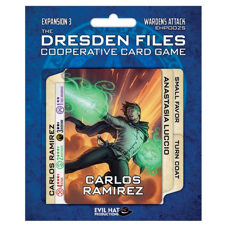 Inside you’ll find two new character decks—Carlos Ramirez and Anastasia Luccio—and two new book decks—Small Favor and Turn Coat.