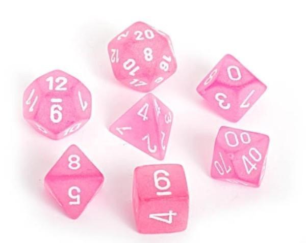 Chessex Frosted™ Pink Polyhedral Dice with White Numbers - Set of 7