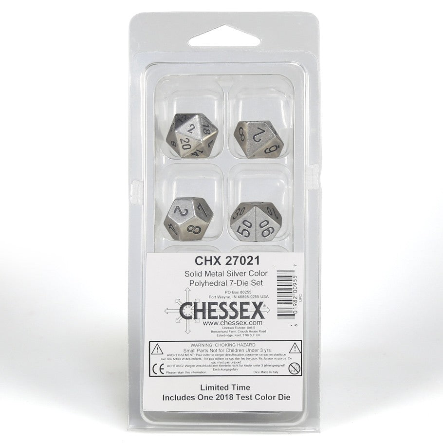 Chessex Metal: Silver Polyhedral Dice - Set of 7