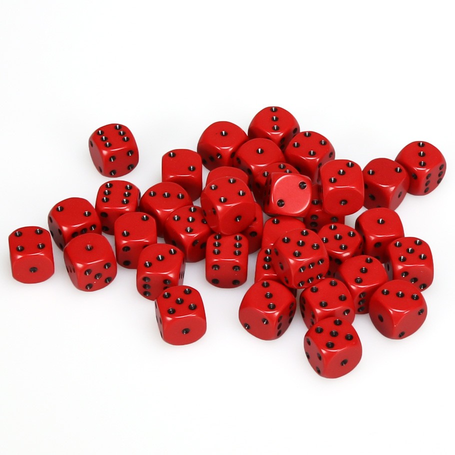 Chessex Opaque Red with Black Numbers 12 mm Dice Block (36 dice)