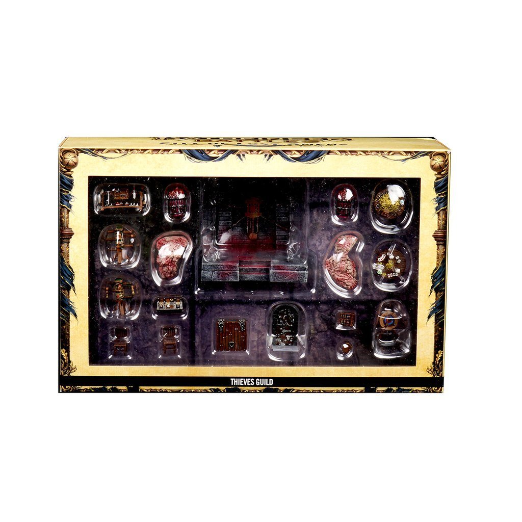 Key FeaturesIncludes over 15 pieces to decorate the Thieves Guild! Traps await you around every corner! Piles of loot are stashed everywhere! Plenty of targets to practice on with the tools of the trade! Pull away a false wall on the back of Norgorber's Altar to reveal a secret passage!