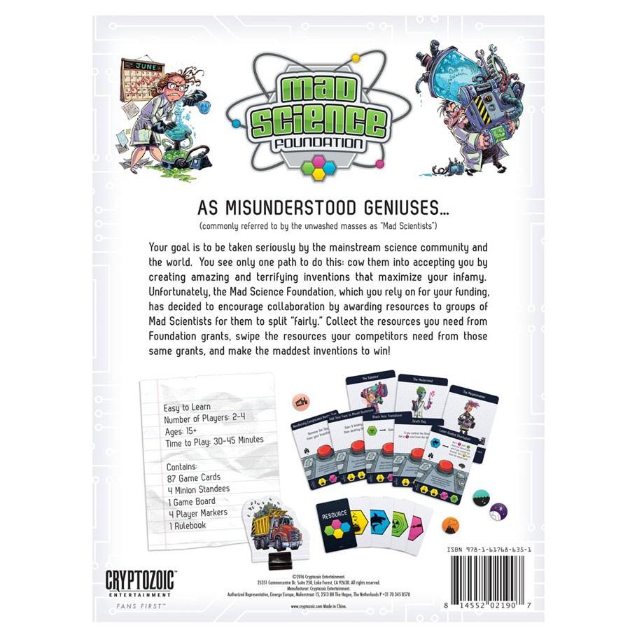 Throughout the centuries, mad scientists have always encountered the same problem of very limited access to the dangerous resources they require. To solve this problem, the Mad Science Foundation was created. Now these "misunderstood geniuses" can finally get the access they need to the four vital building blocks of mad science: Lasers, Dark Matter, Cryptomium, and Sharks.