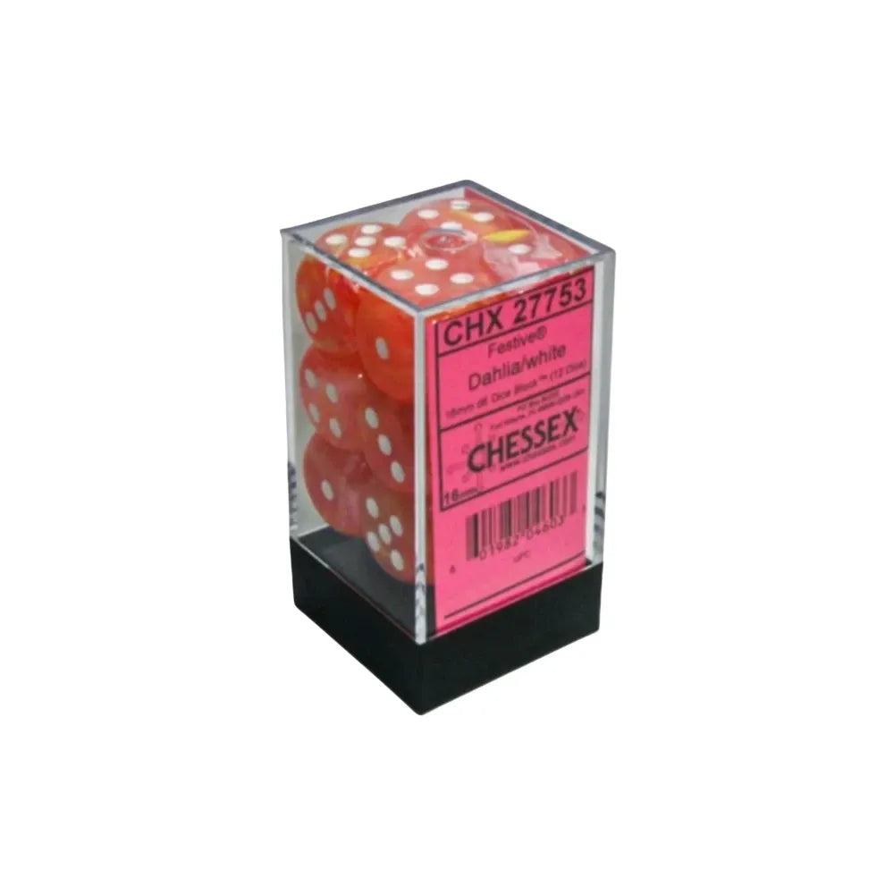 Chessex Festive™ Dahlia with White Pips 16mm Dice Block (12 dice)