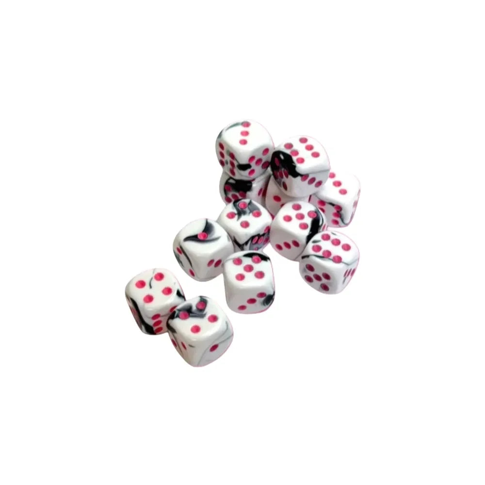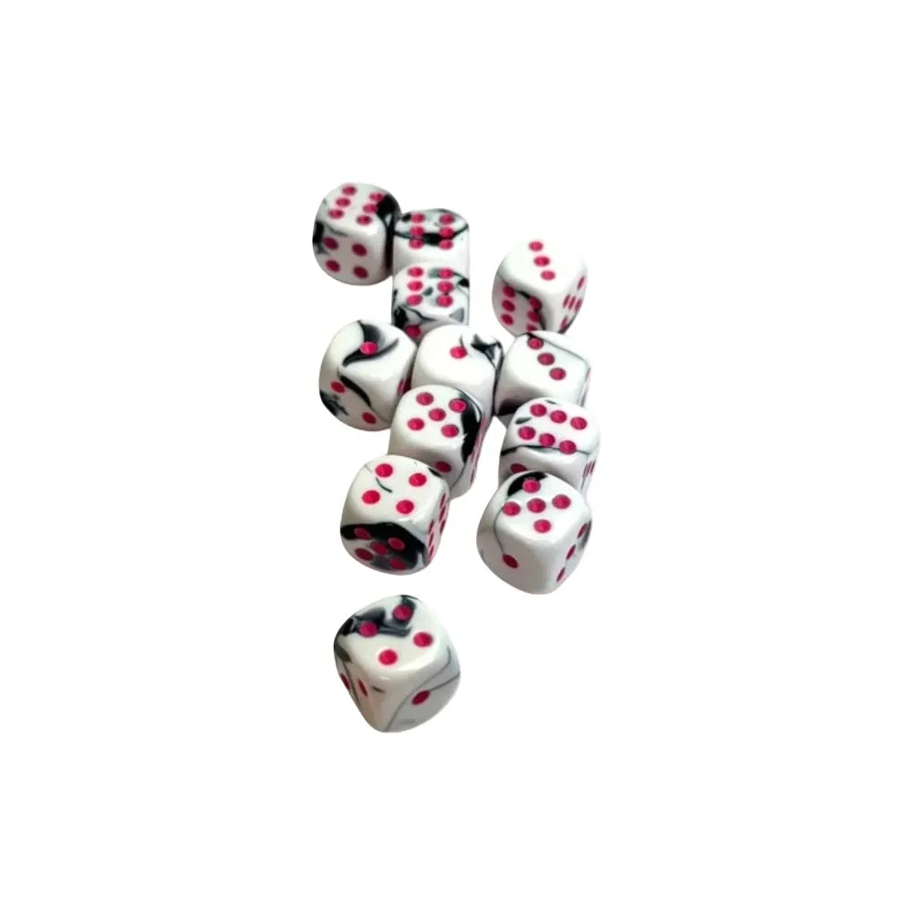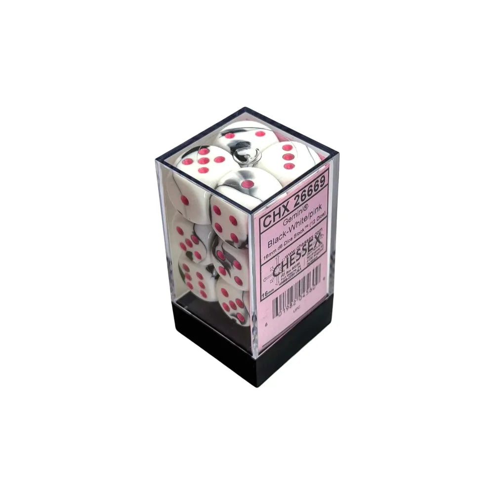 Chessex Gemini™ Black-White with Pink Pips 16 mm Dice Block (12 dice)