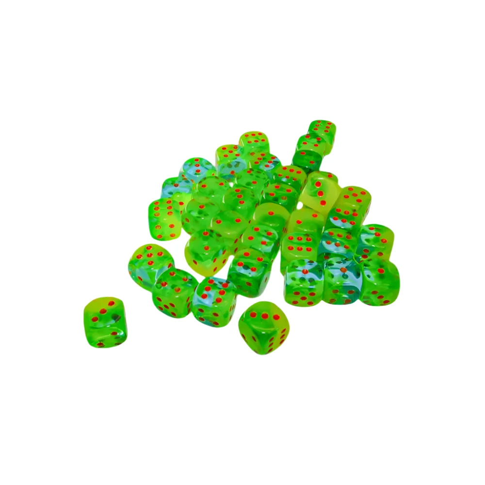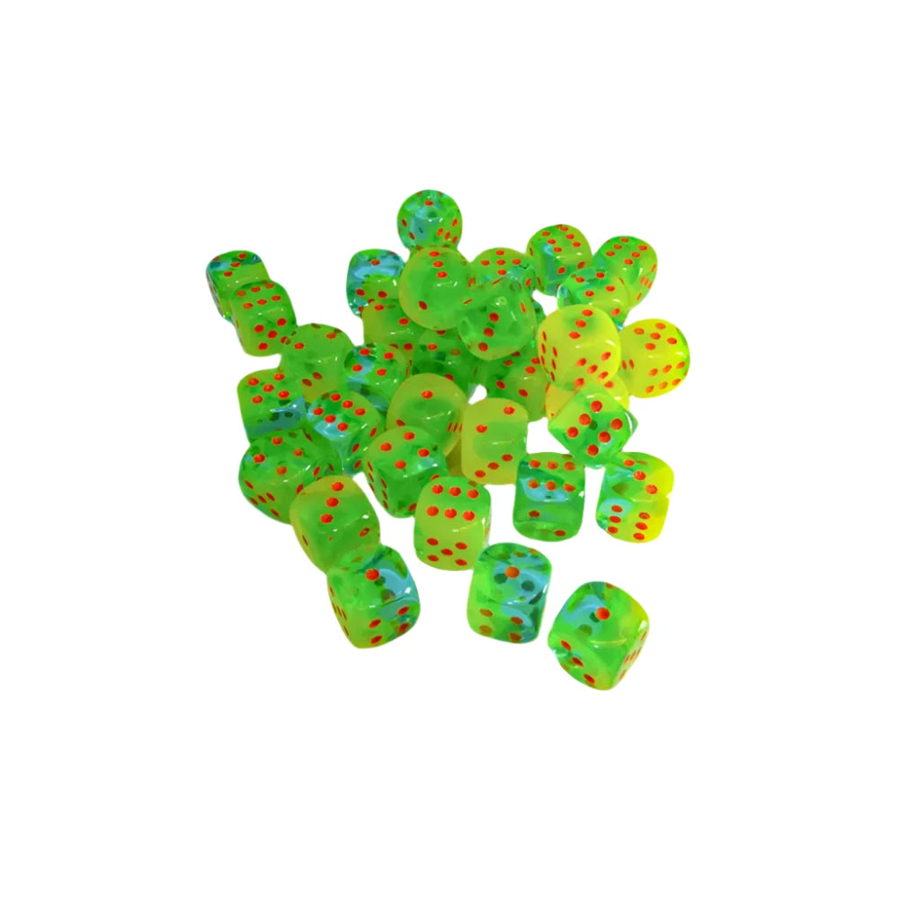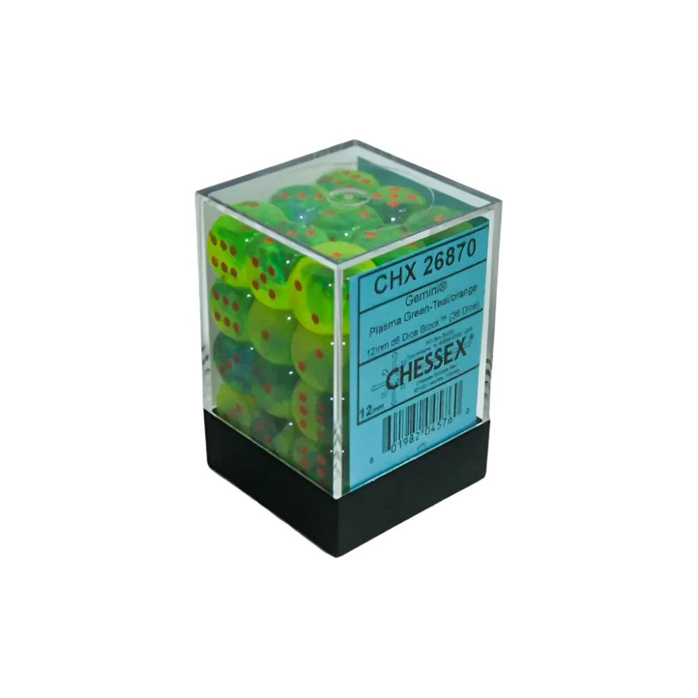 Chessex Gemini™ Plasma Green-Teal Luminary with Orange Numbers 12 mm Dice Block (36 dice)