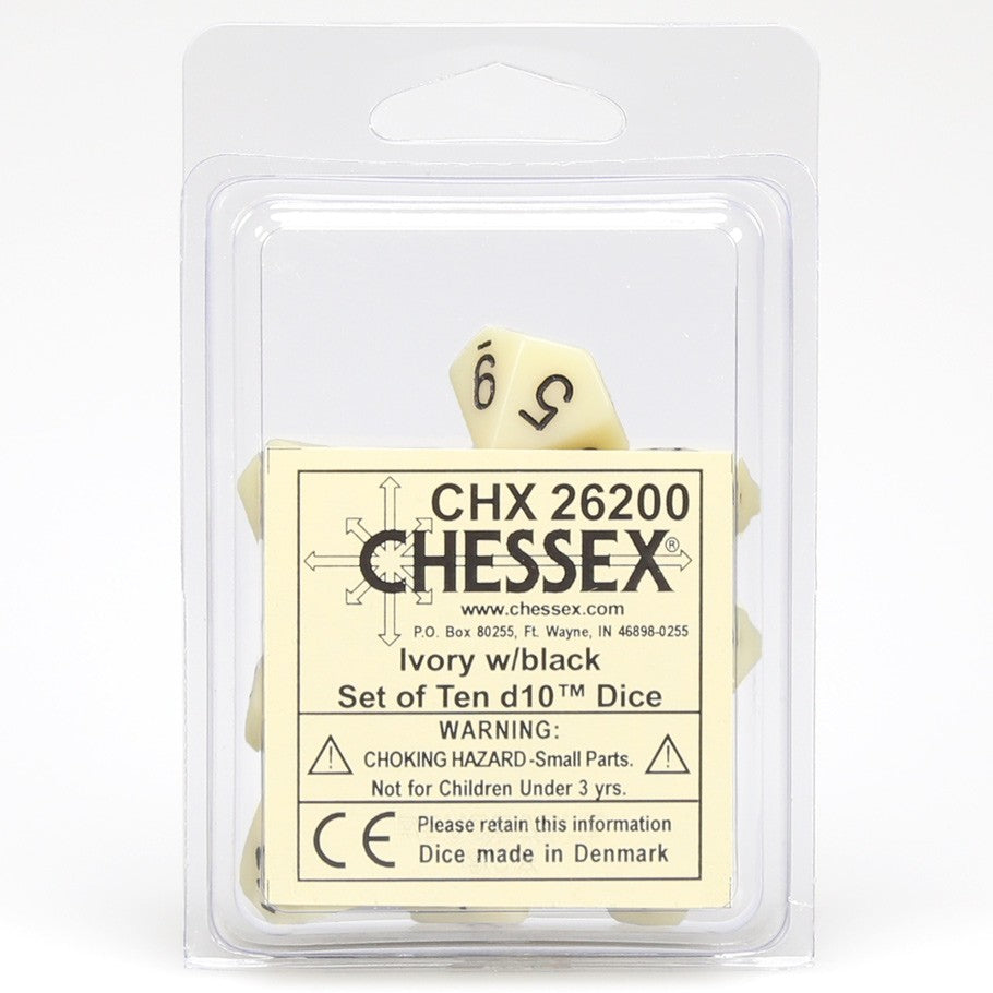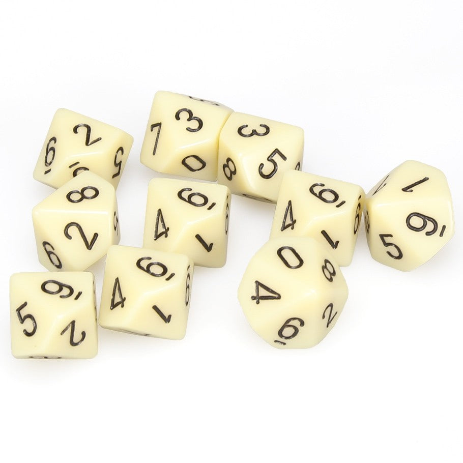 Chessex Ivory Opaque with Black Numbers d10 - Set of 10