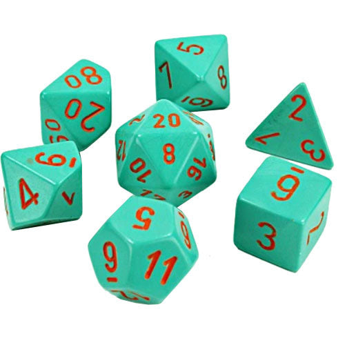 Chessex Lab Dice Heavy Turquoise with Orange Number Polyhedral Dice - Set of 7