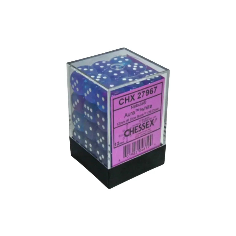 Chessex Nebula Aura Luminary with White pips 12 mm Dice Block (36 dice)