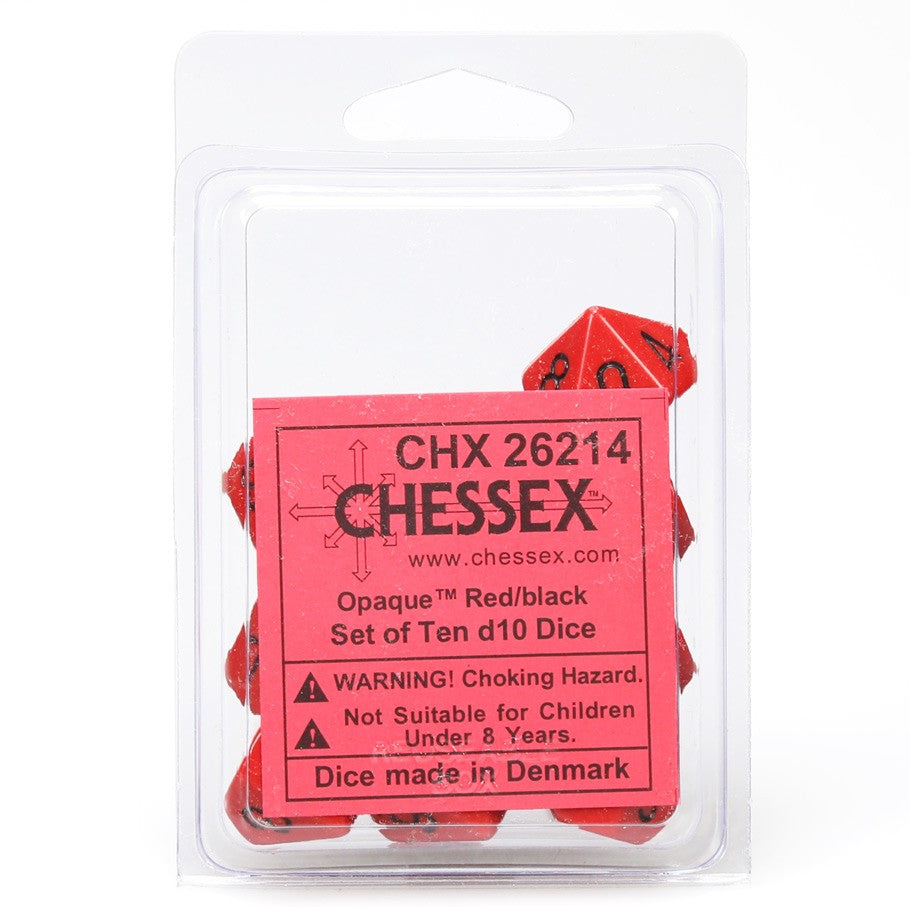 Chessex Red Opaque with Black Numbers d10 - Set of 10