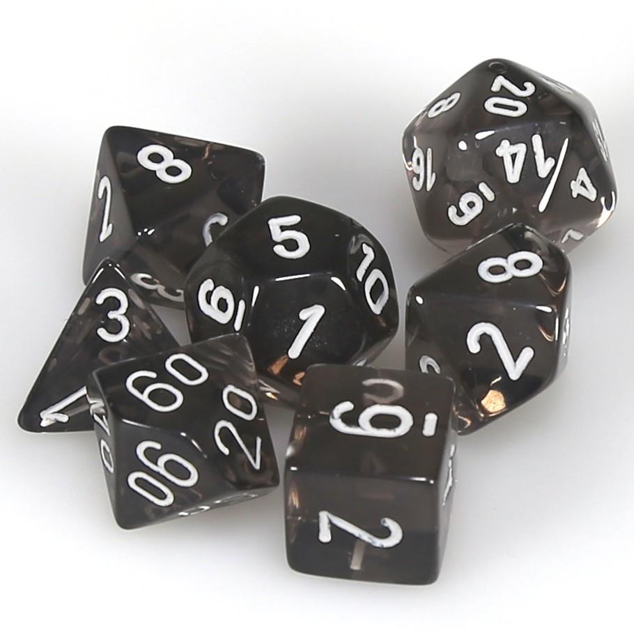 Chessex Smoke Translucent Polyhedral Dice with White Numbers - Set of 7