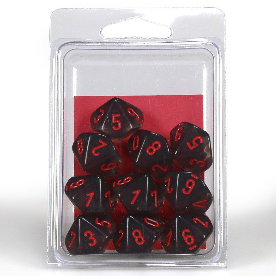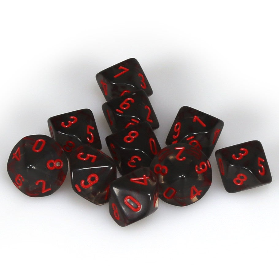 Chessex Smoke Translucent with Red Numbers d10 - Set of 10