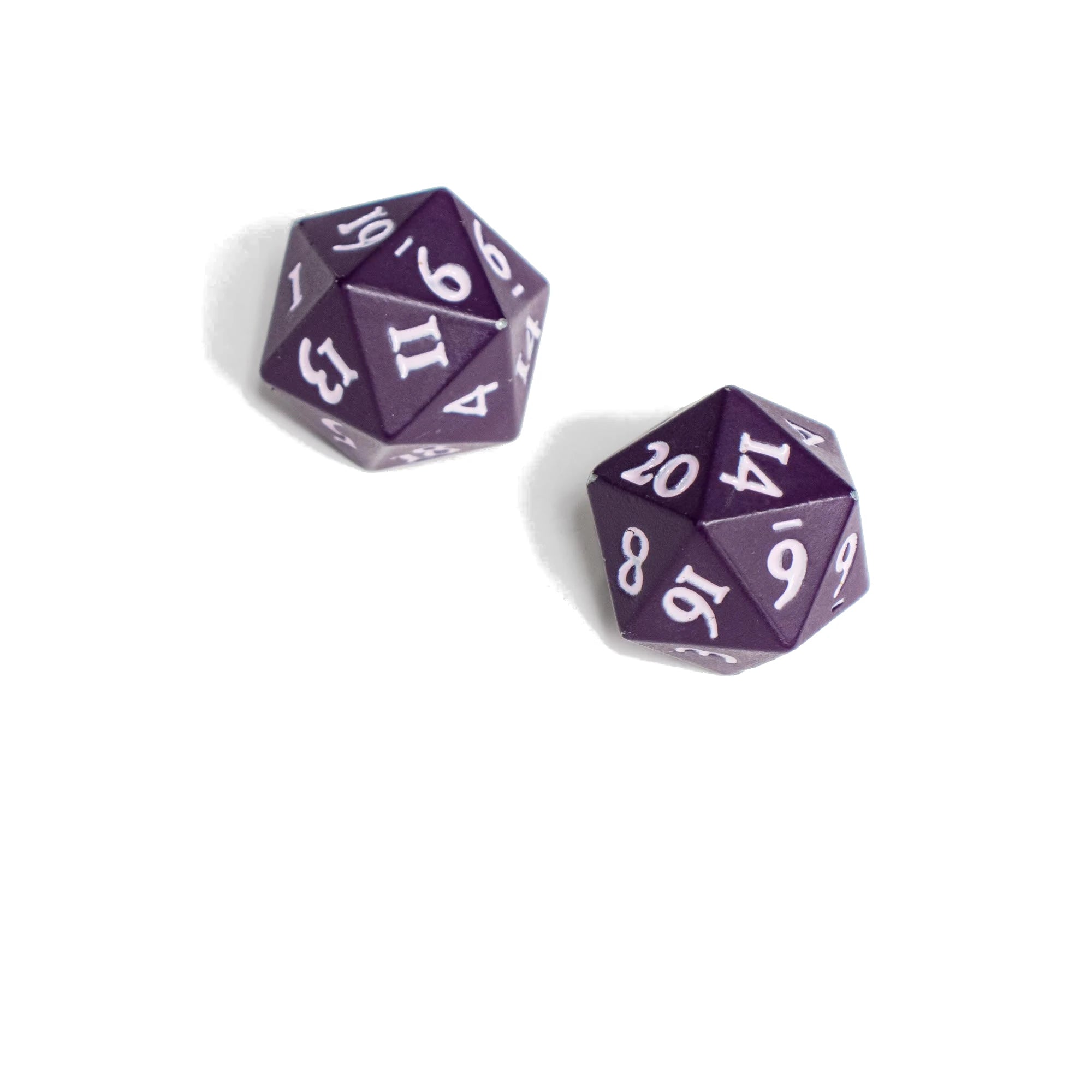Chase that Natural 20 with Ultra PRO's Vivid Heavy Metal D20 Dice - Midnight Plum! These 20-sided RPG dice are made with zinc-alloy metal for a solid, weighted feel. Each set includes two colorful dice featuring white contrast numbering, smooth edges, and powder coating to withstand repeated rolls during long D&D and tabletop RPG sessions.
