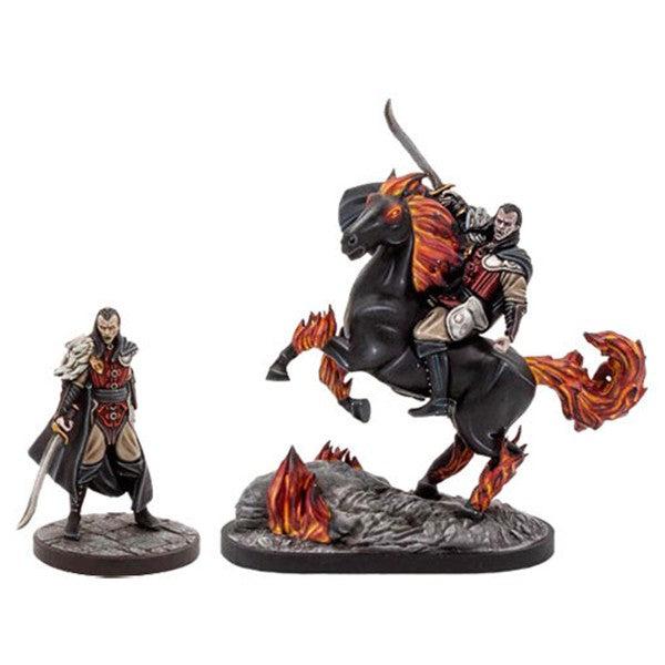 Under raging storm clouds, a lone figure stands silhouetted against the ancient walls of Castle Ravenloft. The vampire Count Strahd von Zarovich stares down a sheer cliff at the village below. A cold, bitter wind spins dead leaves about him. Strahd turns to the sky, revealing the angular musscles of his face and hands. He has a look of power - and of madness. His once handsome face is contorted by a tragedy darker than the night itself.