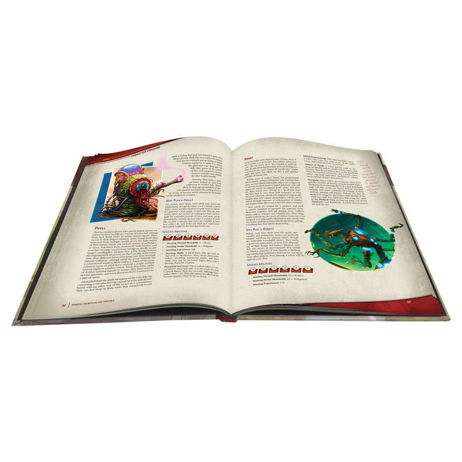 Secrets of the Crucible contains new character creation options, unique weapons and armor, new skills revolving around the mysterious æmber permeating the world, bizarre adversaries, and a new adventure builder that puts all these aspects together!
