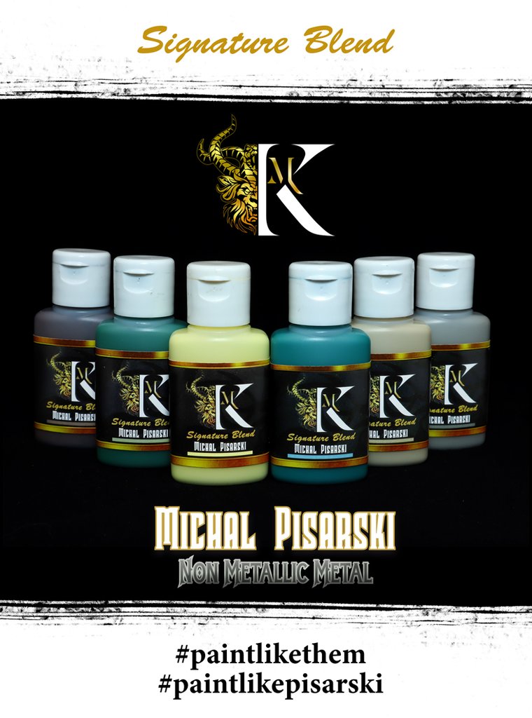 6 acrylics paints color blended by the artist Michal Pisarski, specifically intended to paint Non Metallic Metal.