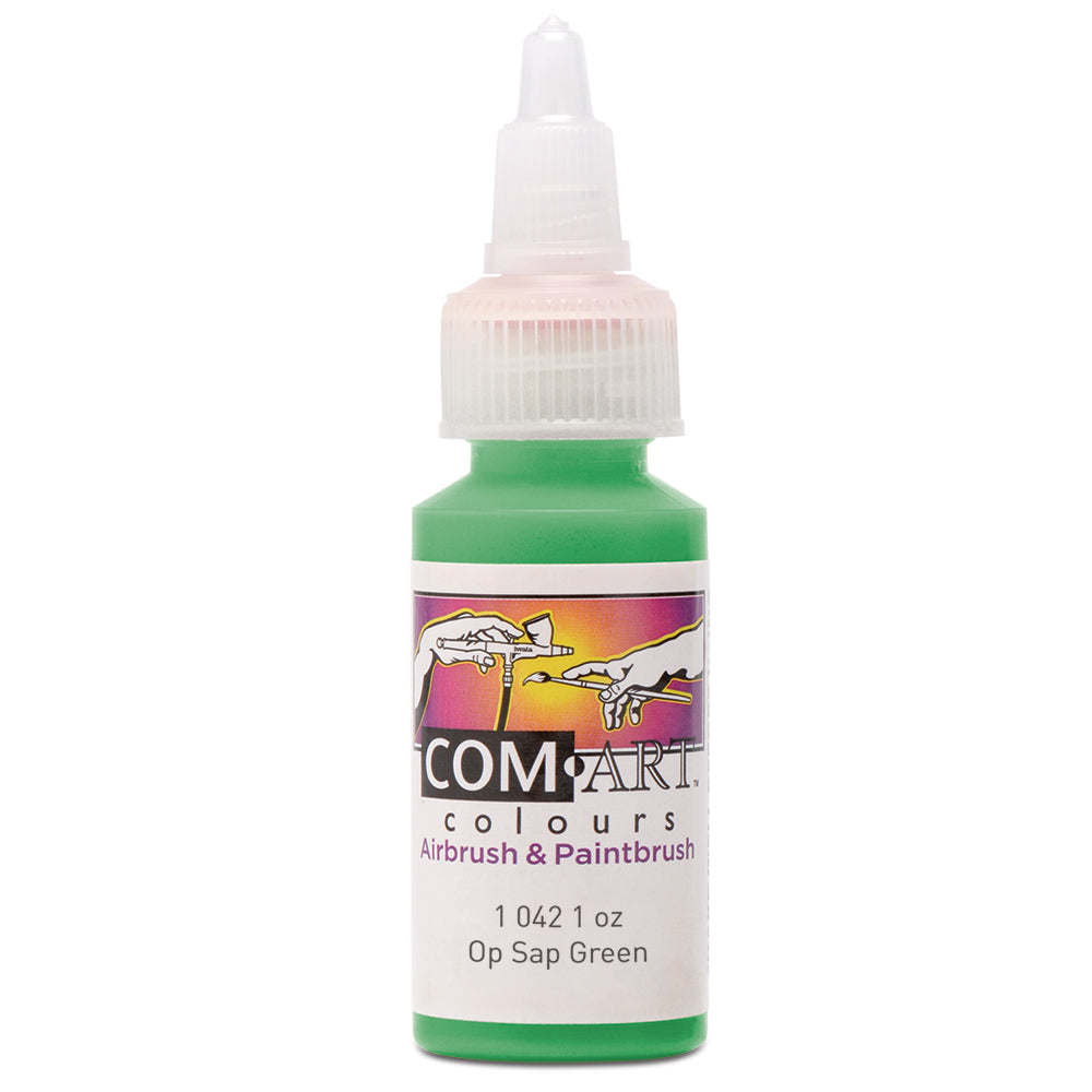 Com Art Colours are lightfast and use the finest ground pigments so they will spray smoothly and won't clog your airbrush. Opaque and transparent colours can be intermixed without bleeding or show-through.