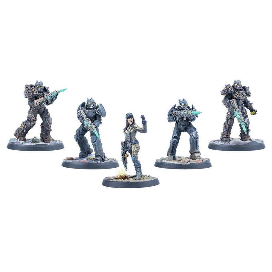 This boxed set contains five 32mm scale multi-part high quality resin Enclave miniatures, each with unique scenic bases, to allow players to expand their Fallout Wasteland Warfare games.