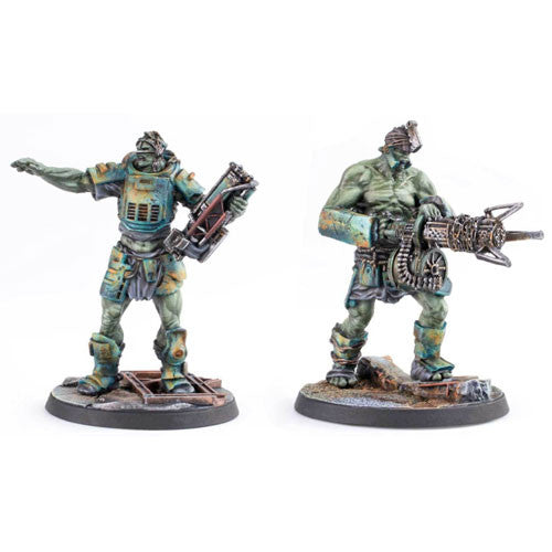 This boxed set contains three 32mm scale multi-part high quality resin Super Mutant miniatures, each with unique scenic bases, to allow players to expand their Fallout Wasteland Warfare games.