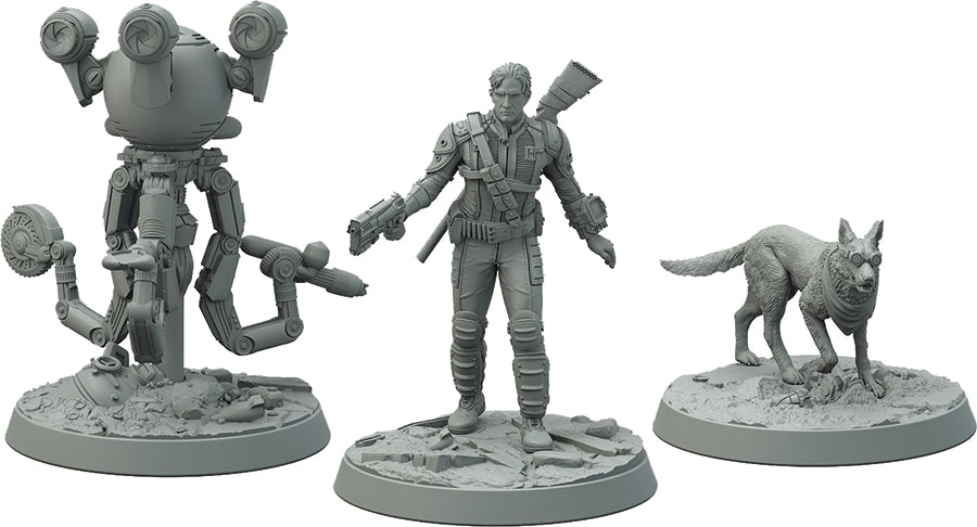 This Fallout: Wasteland Warfare set contains 32mm scale high-quality multi-part resin miniatures with scenic bases.