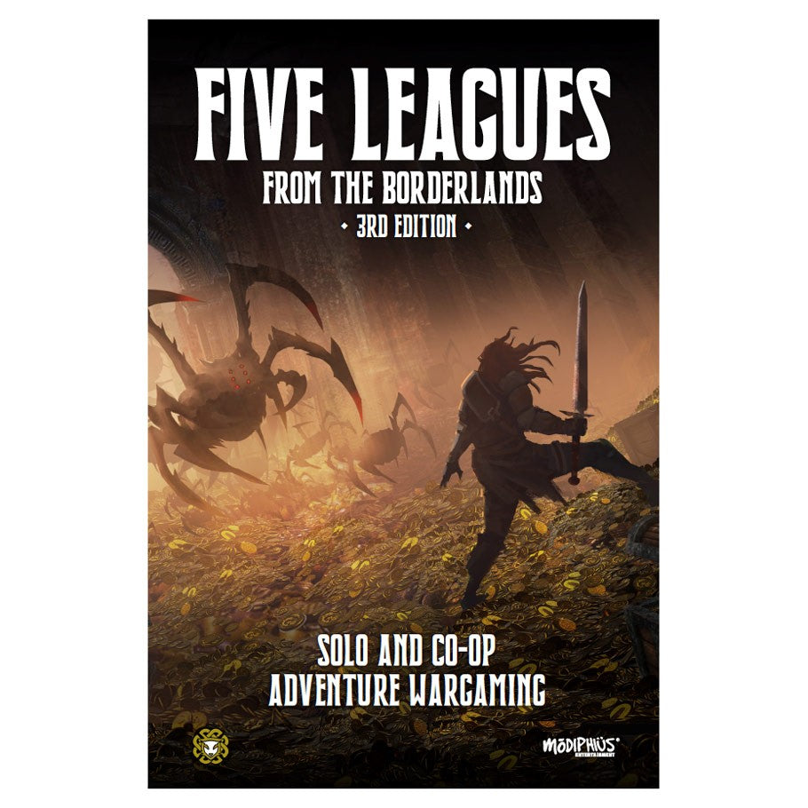 The last tomb was crawling with Grave Walkers, the Tower held a fey sorcerer, we lost Tring there, blasted by eldritch fire, Artum fell as we ran from the trolls of the deep woods, but for now, the village is safe. Tonight we’ll restock the gear and recruit any travellers from the inn who fancy a share of the coin. Tomorrow we’ll take the woods, then bring down that cursed tower for good. Maybe then we can rest, but there are already worrying rumours from the next valley. Five Leagues From the Borderlands is a solo adventure wargame where you take the role of a warband of heroes and adventurers and explore a grim fantasy world full of monsters, enemies, creeping malice and exciting quests. The whole campaign is generated procedurally with each battle created from over 100 different enemy types, 17 unique foes and 6 scenario types that can play out in a wide number of ways. As you play, you will explore the game world, discover new locations and take on quests and jobs. Your warband will gain in experience and power and find wondrous loot… or die gruesomely in brutal combat. The game is playable with any miniatures you may own and can be played on a 2x2 foot or 3x3 foot gaming table, making it ideal for players who are just getting started on fantasy gaming or for whom this is their first miniatures game. All you need is 6 figures for your heroes and a handful of suitable enemies to fight.