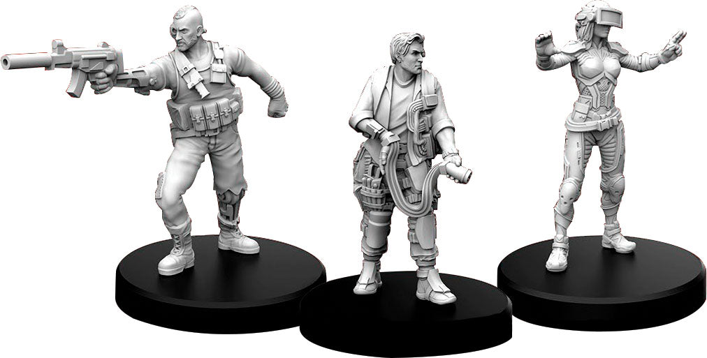Bring your adventures to the tabletop with these detailed Cyberpunk RED models. Each model is made from durable plastic and includes a base. Use them to represent your player characters and other citizens living on the edge!