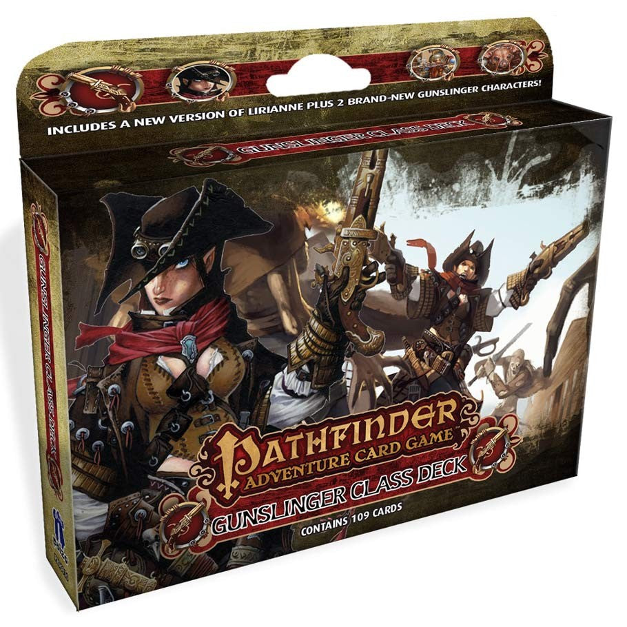 The 109-card Gunslinger Class Deck contains three new characters-including a new version of the iconic gunslinger Lirianne and both new and familiar weapons, armor, items, and other boons that will launch your gunslinger through an entire Adventure Path.
