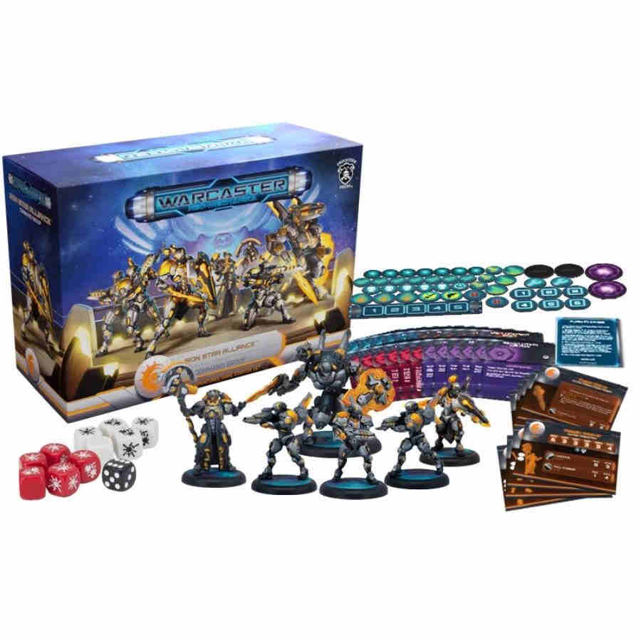 The Iron Star Alliance Command Group Starter Set contains everything one player needs to begin battling across the Thousand Worlds of Warcaster: Neo-Mechanika.