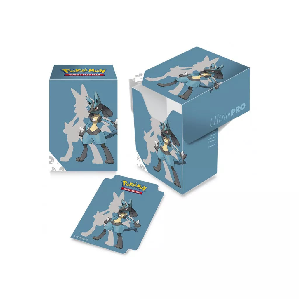 Lucario Pokémon Deck Box. Holds and protects up to 75 double-sleeved cards comfortably.
