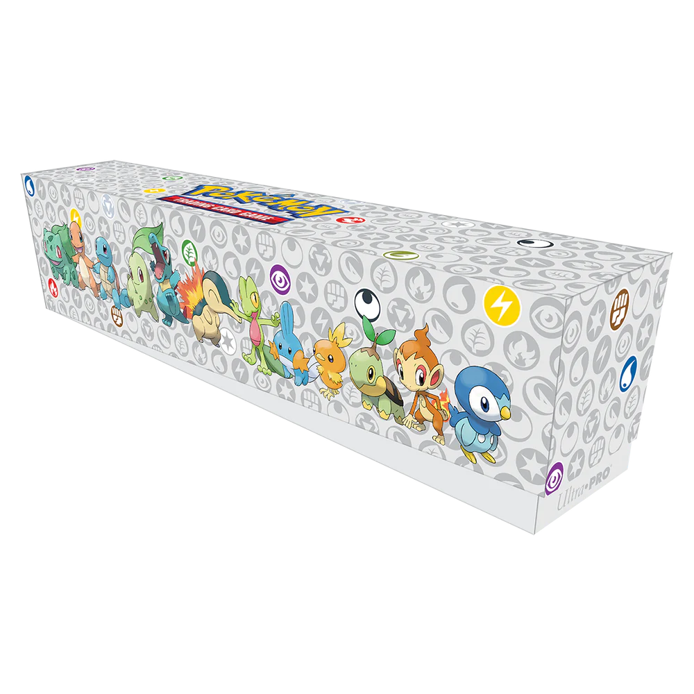 This special bundle includes one playmat, 65 Deck Protector® sleeves, and one Deck Box® with a matching deck divider. All accessories are packaged in a themed card storage box which holds up to 700 cards sleeved in Ultra PRO sleeves. Accessories feature iconic Pokémon energy symbols and popular starter Pokémon from Kanto, Johto, Hoenn, Sinnoh, Unova, Kalos, Alola, and Galar regions. This bundle makes an excellent gift and is a must-have for any Pokémon trainer or TCG collector.