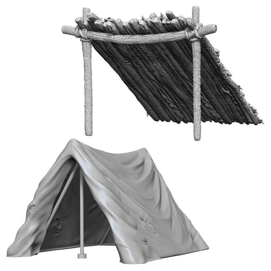 WizKids Deep Cuts Unpainted Miniatures: Tent & Lean-To (2)